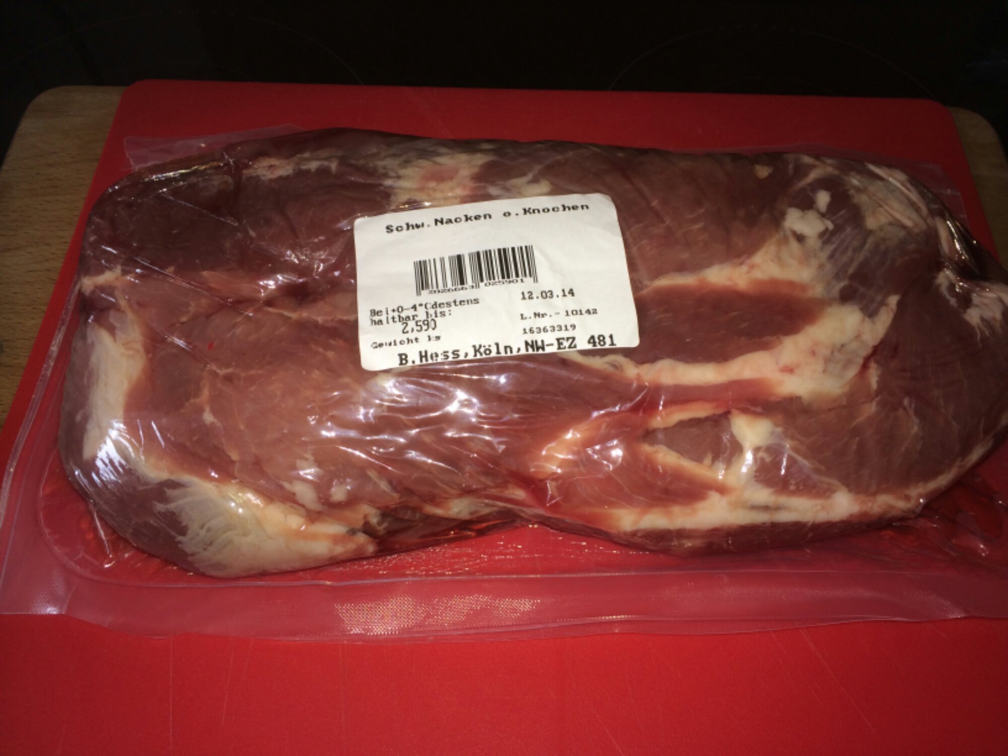 Begonnen hat alles gestern in der Fegro in Hilden. Ich stand in der Fleisch Abteilung und und konnte einfach nicht wiederstehen mir ein kleines Paket Schweine Nacken in den ergonomisch geformten Einkaufswagen des Hauses zu verfrachten.